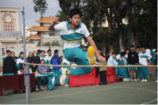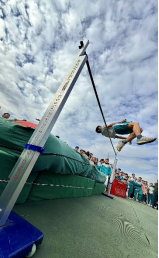 绿色橡胶地上,是高度与活力的交汇。运动员助跑、起跳、腾空、过杆,身姿轻盈如燕。每当有一个运动员成功越过竹竿时,在场的同学们都爆发出欢呼;蔚蓝天空中,实心球划出一道完美的抛物线,在远处的绿茵地落下,这是力量与技巧共同的杰作。每一位选手都在用自己的方式,诠释着“更高、更远、更强”的体育精神,展现外校学子敢于挑战、自强不息的精神风貌。