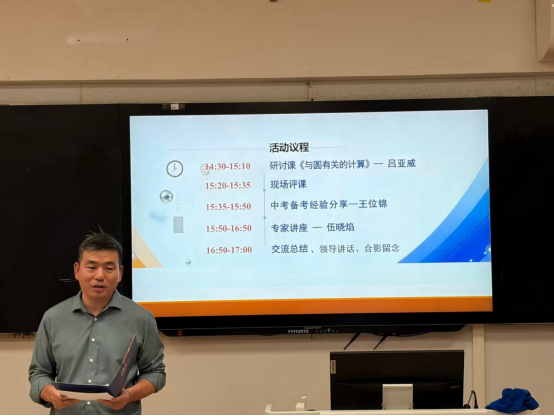 首先,广州市实验外语学校吕亚威老师展示研讨课例《与圆有关的计算》。课堂设计符合学生学情,充分体现了以学生为主体,并且学生展示时及时引导,注重对其思维能力的培养,题型紧密结合广州中考考点考向,题目梯度层次分明,给我们以深刻的启发和思考。