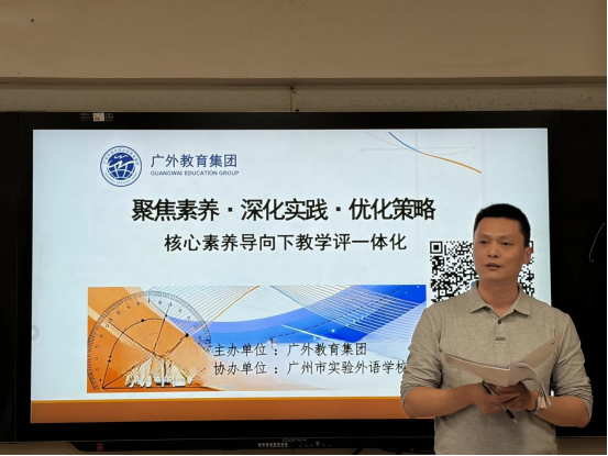 广外集团基础教研和教师发展中心主任江健博士、广州市教育研究院中学数学教研员伍晓焰老师受邀出席此次会议,广外集团中考研究数学专家组薛锋(广外附中)、陈日华(广外从中)、王位锦(广实外校)以及各校数学老师60余人通过线下、线上方式全程参与,此次教研盛宴活动由集团中考数学研究专家组组长、广实外校初中教学处主任王攀峰主持。