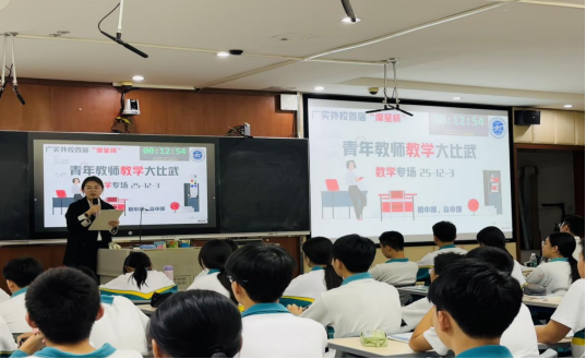 12月3日晚,广实外校首届“摩星杯”青年教师教学大比武——数学专场隆重举行,全体初高中老师共同观摩了此次比赛。活动采用“20分钟微课+8分钟即时答辩”的赛制。初中、高中四位青年教师同台竞技,以数为媒,以理为帆,展现了新时代青年教师扎实的功底与创新的活力。这是一场数学智慧的交锋,更是一次教育初心的淬炼。