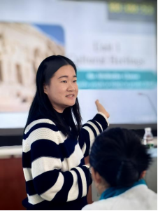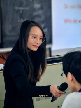 第二轮出场的是高中部龙姜颖与曹梦菲。两位青年教师表现出色。她们凭借扎实的语言素养与出色的课堂驾驭能力,分别呈现了一节结构清晰、互动充分的语法课以及一节生动活泼、富有创意的视听课,展现了青年教师的教学风采与专业实力。