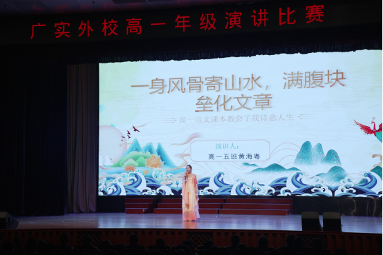 12月5日晚,广实外校黄华楼内灯火如昼,墨香与掌声交织。高一语文演讲比赛在此拉开帷幕,学子们以“高一语文课本教会了我——”为引,携经典而来,以声传情,让语文的温度与青春的锋芒在舞台上绽放。
