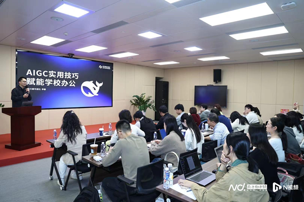 学习小组首先参观了培训基地,了解AI在内容创作领域的前沿应用。随后,培训讲座聚焦教育实际场景。南都主讲人李豪详细讲解了AI工具在公文撰写、教案设计、宣传策划及多媒体制作中的实用技巧,强调其作为“灵感助手”和“效率工具”的价值。九章爱学技术工程师何依翎则系统演示了AI如何融入备课、出题、互动、批改与学情分析等教学全流程,提供了具体可行的操作方案。
