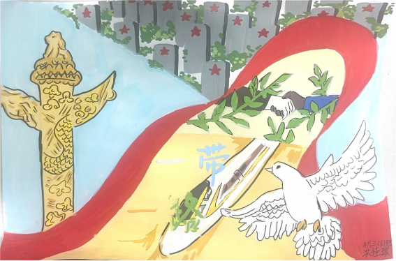 本次展览共收到寒假作业作品将近400幅,经备课组教师评选,最终展出优秀作品60幅。展览不仅为紧张备考的初三学子带来了一抹艺术的亮色,更在潜移默化中深化了学生对“战争与和平”辩证关系的理解,增强了对中国和平外交政策的认同。