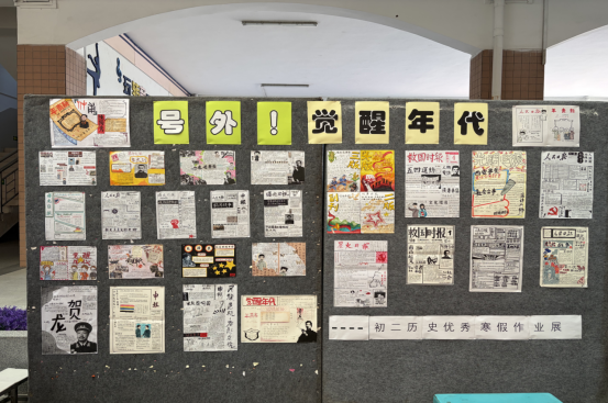 近日,由八年级历史备课组策划的历史寒假作业展《号外!觉醒年代》在学校中庭正式开展。这次展览的全部“展品”,都源于一份特殊的寒假作业——穿越回1840至1949年间的某一天,当一回报纸主编,亲手制作一份记录时代风云的手抄报。
