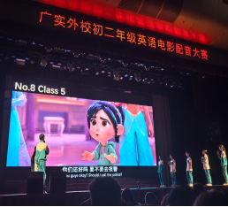 初二8班的选手们带来了《疯狂动物城》片段,他们精准还原了朱迪兔子警官的乐观坚韧和尼克狐狸的玩世不恭,俏皮的对话、生动的语气切换,引得台下观众捧腹大笑;初二1班挑战《哈利·波特与魔法石》,选手们用充满英伦韵味的发音,将霍格沃茨魔法世界的奇幻与神秘展现得淋漓尽致让观众仿佛置身于魔法课堂;此外,初二3班的《寻梦环游记》中对亲情与梦想的深情诠释。初二10班的《小马宝莉》演绎的友情的可贵,友情的力量……每一段配音都成为了一次独特的视听体验。选手们不仅在语音语调上力求精准,更注重通过肢体语言、表情神态来贴合角色,让台下观众时而欢笑、时而感动,现场掌声与欢呼声不绝于耳。