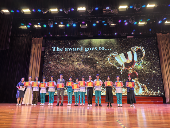 经过一个半小时多的激烈角逐,评委老师们从语音准确性、情感契合度、团队协作、创意表现等多个维度进行综合评分,最终评选出了特等奖三名,一、二各五名及“最佳语音语调奖”“最具表现力”“最佳主持人”等多个单项奖项。学生处于水主任,年级主任黄颖老师为获奖班级和选手颁发了荣誉证书与奖品,并对所有参赛同学的精彩表现给予了高度肯定。教学处王佳琼主任对初二年级的配音演员们,对背后默默付出的英语老师们给与的肯定和鼓励。也激励初二全体同学多参与英文配音和其他外语节活动,通过活动建立自信心和锻炼个人能力,全面提升自己。她鼓励同学们以此次比赛为契机,保持对英语学习的热爱,大胆表达、勇于创新,让英语成为连接世界的桥梁,在语言学习中收获成长与快乐。