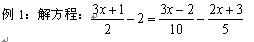 2、学生尝试解这个方程。学生们在尝试的过程中,可能有两种不同的解法,一种是去分母求解,一种是直接合并同类项、通分求解。由此引入去分母的求法。
