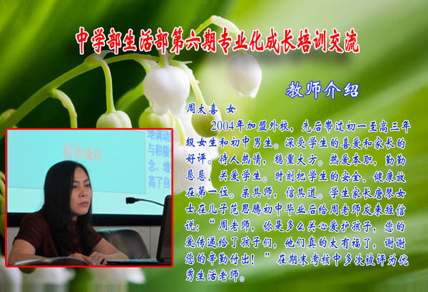 自主管理的核心是分层管理,使每个人既是管理者又是被管理者。宿舍管理的分工采取自上而下的组织结构,即生活老师在统筹全局的前提下重点管好几个楼层长,每个楼层长管好几个宿舍长,每个宿舍长管好几个成员。这样的管理模式,一方面可以有效地避免宿舍管理的盲目性,抓住了管理的重点,提高了工作的效率;另一方面可以避免生活区保姆式的管理,最大限度地调动同学们自主管理的主动性与积极性,渗透了生本管理的理念,增强同学的主人翁意识,提高了自我管理能力。