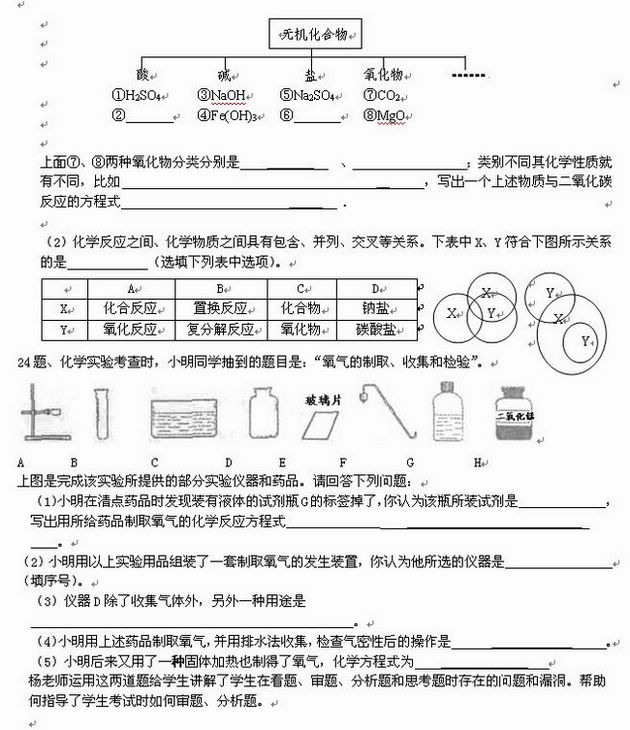 首先要对试卷进行认真的分析,找出学生的对化学知识的疑点、盲点。杨元辉老师的试卷讲评课,这一点做得非常好。她首先找出了学生答题存在下列问题: