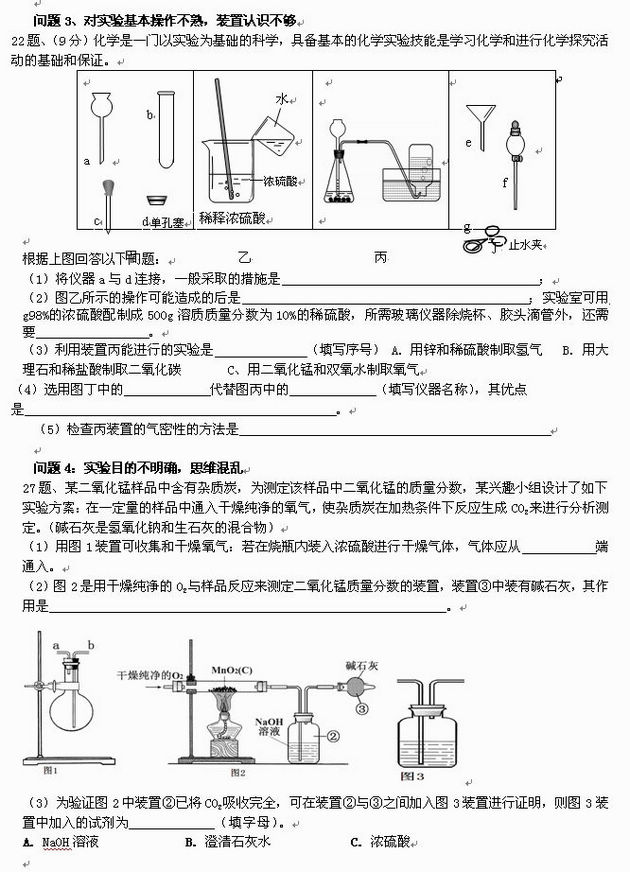 3、实验技能较差,特别是对实验装置的认识不够