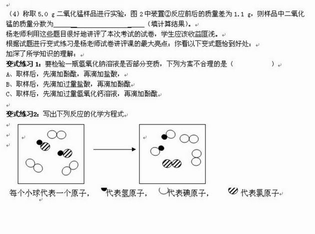 如何上好试卷讲评课是一个非常值得研究的课题,化学总复习要经常做题经常考试,也就要经常讲评试卷,上周我们初三备课组在化学研讨课上进行了有益的尝试。
