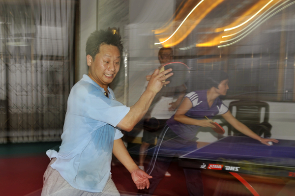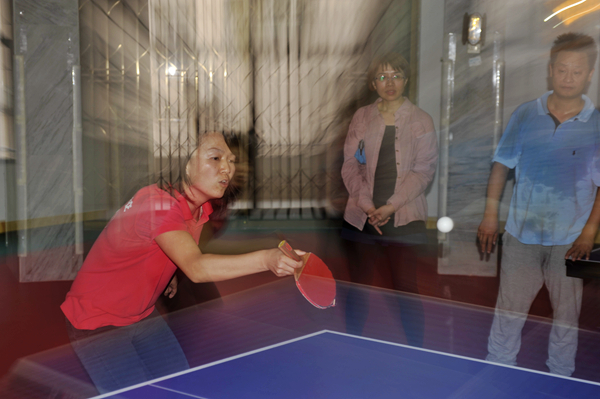 今天下午,教工乒乓球赛决赛在初二年级和初三年级之间进行。