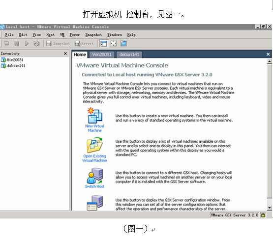 根据我们的目的和硬件条件,选择了 VMware GSX server 作为这次实战演习的主角,而服务器就选用上面提到的图书馆 服务器。VMware GSX server在 Win2003 下的安装过程很简单,使用缺省选项,点击“下一步”基本上就能正常安装了,我们主要探讨一下 虚拟机的设置和虚拟机上操作系统和应用系统的安装。安装好 VMware GSX server ,点击桌面上的“VMware GSX Server Console”