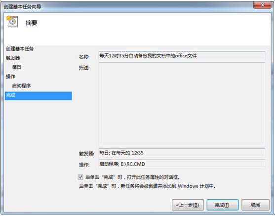 到此设置完成,计算机会在每天中午12:35的时候备份您宝贵数据。
