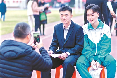 广外外校的操场上,40个“招聘”摊位以主席台为中心两边排开,40位家长端坐在各自的招聘单位前,“物色”最合适的求职对象。很快,40个摊位前几乎都站满了前来应聘的学生,他们中一半以上特意穿上了正装。