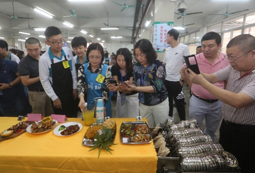 正所谓无鸡不成宴,记者现场发现,以鸡为主原料的菜式品种可真不少。可乐鸡翅、花椒鸡、豉油鸡、手撕鸡、木瓜鸡汤等等,“没有一只鸡逃得出广外外校学生的手心”,一位围观者看着现场烹饪情景,打趣地说道。