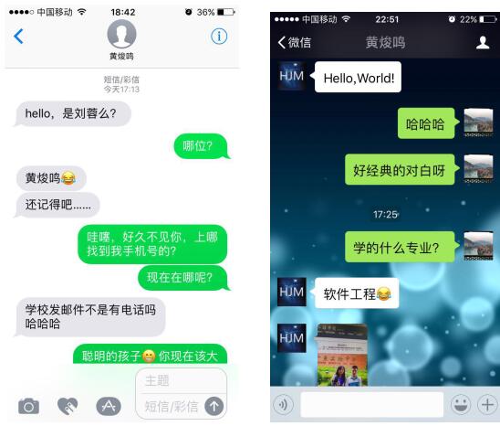一见名字,我不由得惊笑出声:啊呀呀,好久不见的娃,怎么就找到我了?说来说去原来是我关掉了微信的通过qq搜索功能,导致他加不了我微信。于是我手动添加了他的微信号。“叮咚”第一个讯息来了:“Hello, World!”接头暗号如此的销魂,这可是每个程序员都心领神会的语句:C语言编程第一课,就是学会输出Hello, World!好家伙,原来是看了我发的新闻稿才想起我来,可是因为当年给你写的新闻稿太过默默无闻,让你不平衡了?