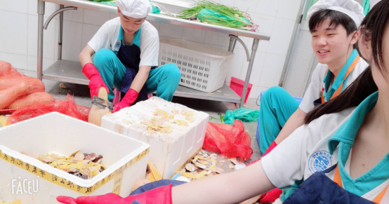 一天下来,虽然不轻松,但我们也确实学到了许多东西,不得不说饭堂的叔叔阿姨非常热心,不仅仔细地给我们讲解怎么切菜,制作点心,还会给我们分好吃的!强烈推荐饭堂部门!!只要你有兴趣,“饭堂欢乐一日游”不是问题 o(∩_∩)o ~