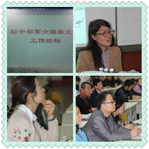 2016年11月30日晚7:10分,在8507多功能课室举行了由初中部学生处发起组织的第六届初中班主任工作论坛,本次大会主题是:成长共同体与班级建设。本次论坛由初中部学生处主任冯艳老师主持,出席本次论坛的老师有:陈莲校长助理、冯艳主任、张亚娟主任、卢小玲主任、许广平主任以及初中部所有班主任。