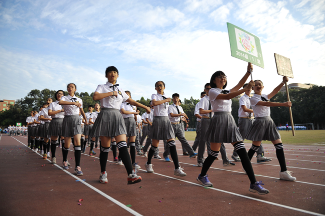 第二十二届 初中部运动会今天上午拉开战幕。气温骤降,赛场温度却骤增。枪声未响,团体赛率先亮相,各个班级比服装、比整齐、比口号、比创意、比面貌……。开幕式上,不仅多了家长方队,还出现了运动员方队和团委学生会方队,焕然一新的队伍逐次接受老师们的检阅——