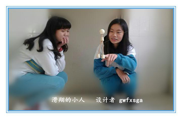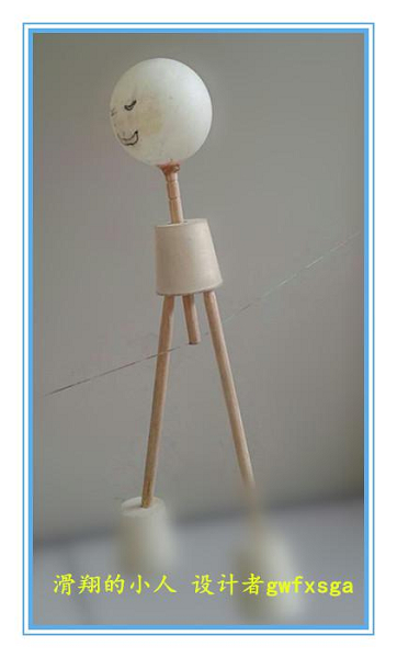 实验操作:1、如图制作一个小人;2、栓好鱼线或钢丝(3米长鱼线或钢丝,上下高度差15—30厘米为宜);3、把做好的小人放上去,4、欣赏小人滑翔过程的风采吧。