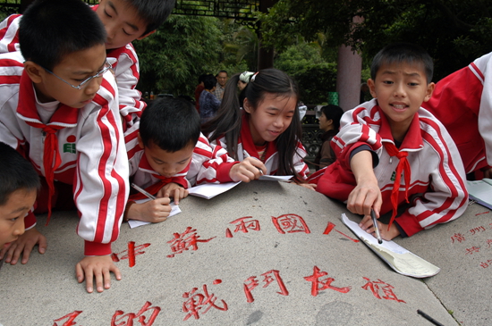 当年清明,小学组织烈士林园春游。 这些同学今年已经上大一了。