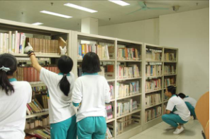 在图书馆部门的人有:曹梓琦,钟颖茵,董子仪,龚诗语,彭彬琦,郑月嘉,他们在图书馆负责整理图书,他们整理得非常仔细,非常辛苦,即使在空调房里也累得汗流浃背。并且他们一致认为,沉浸在图书馆书海的世界蛮好的,没有杂念。一心一意的做好自己的工作,为他人奉献,何尝不是一件好事呢?他们表示,即使很累,也阻挡不了他们前进的脚步。
