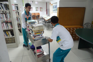 “看似简单的整理书籍,对于我们来说并不轻松,整层的书籍都要摆放好……以后再也不会乱拿乱放了!”