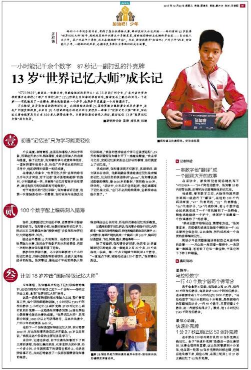 计划18岁冲击“国际特级记忆大师”