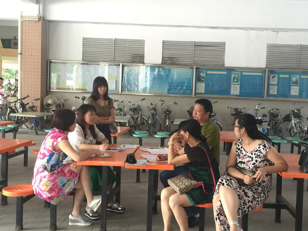 瞧:连下课高数组的老师是意犹未尽啊!接着讨论,叶校长虽然是语文专业的,可对数学也有自己不同的见解,大家讨论的热火朝天的。这就是外校的教研氛围,随时随地啊!必须赞一下!