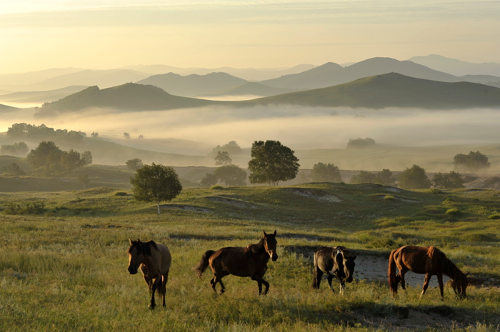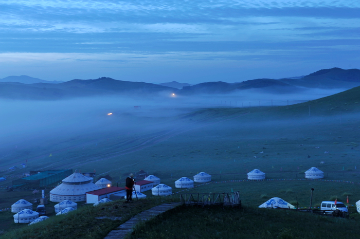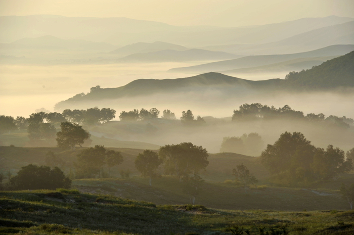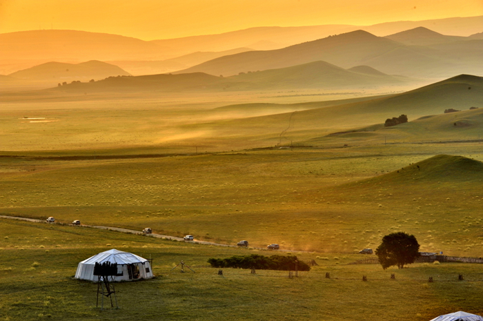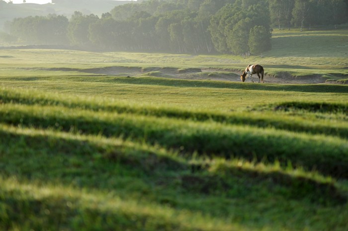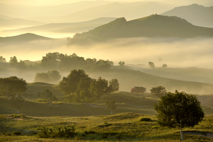 听说今年内蒙草原罕见的风调雨顺,水草丰茂,于是,暑假期间约上几位摄友开始了一段难忘的摄影之旅。摄影创作与日常旅游最大的区别就是:旅行者追求大山大水好山好水,而摄影人则避开人群跋山涉水追寻“穷山恶水”,我们试图在一年中最佳的季节,一天中最佳的时段,一刻中最佳的瞬间将眼前的世界改头换面,呈现给您的是完美甚至绝美的瞬间,而这美丽的背后是夜不能寐的负重前行,是忍饥挨饿的顶风冒雨……所有的付出就是为了日出前后几分钟的光影变化,如果晴空万里,如果浓雾笼罩,如果云层蔽日……我们只能一声叹息。