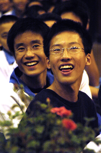 DJ大赛上,两位面带笑容的观众。外校很多传统活动一直持续至今。