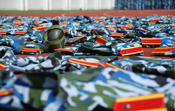 我们绕着宽阔的操场整齐列队。抬头、挺胸、收腹——俨然是标准的军姿动作。所有人伫立于操场上,严肃地绷着脸等候领导入场。没有人动弹,也没有人低声说笑。这,是在教官严厉的教导下,造就而成的严谨纪律。