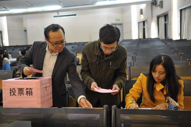 报告结束后,校长万清华介绍了党总支委员候选人的基本情况。黄巧萍宣读了选举办法。参会党员一致举手表决通过了选举办法、监票人和计票人人选。广大党员充分行使民主权利,通过无记名投票的方式,在7名候选人中差额选举出万清华、张洪亮、杨亮、涂奉、黄巧萍(以姓氏笔画排名为序)5人为新一届党总支委员会委员。