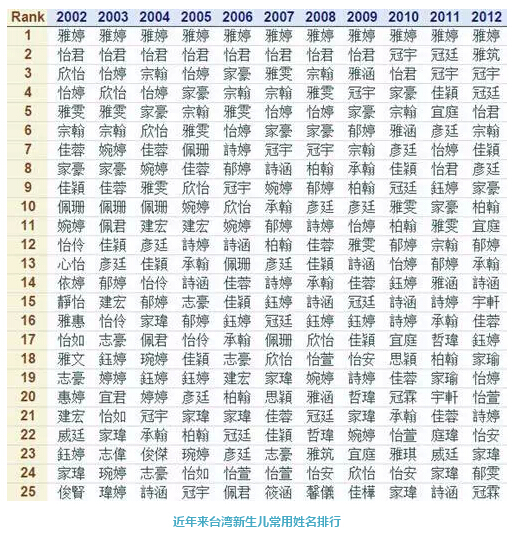 就中国而言,“英”这种一个名字四千多万人的盛况已难再现。“伟”从五十年代到八十年代长期位列男子常用名三甲的状况几乎可以肯定不会在“子轩”、“睿”等名字上复制。就连长期被视为台湾烂大街名代表的“怡君”也在近期终于摔出了前十。