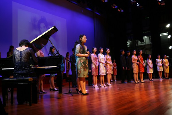比赛告一段落,音乐徐徐响起,原来是曾勇老师率领的初中部演讲与口才团队为我们带来了精彩的节目《至性至情——纳兰性德词8首》。钢琴、葫芦丝,伴随着声情并茂的朗诵,让我们仿佛置身于诗词世界,久久回味。