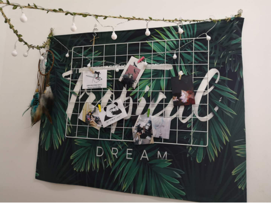 俗话说“生活可以将就,生活也可以讲究。”相伴的岁月美好得令人眷恋。在适应了快节奏的住宿生活后,我们开始于生活中寻找装扮的元素,为我们的宿舍——另一个“家”添些不一样的色彩。于是,一股装扮宿舍的“潮流”悄悄地在学生们之间盛行起来。