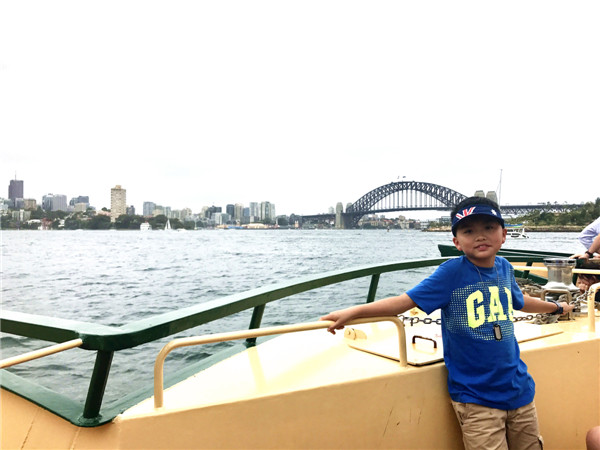 第一天,我们前往悉尼海事博物馆,那里是关于澳大利亚海上军事的博物馆,在馆里,我认为最牛的艇是他们的一艘潜水艇,为什么是潜水艇呢?因为里边的装备很复杂,又很有趣,为什么说有趣呢?因为里边有各种稀奇古怪的设备,如游戏室,不像咱们现在的打电子游戏的游戏室,他们玩的是纸牌游戏,可见当时科技还不够发达。这个游戏室,是供船员们消遣用的,因为水下的生活太艰苦了。很凑巧,我们赶上了澳大利亚的国庆日,特别热闹,可以看到很帅的直升机、战斗机表演哟!更酷的是,可以看到过去那种武装的战斗机,听那声音感觉像是回到了世界大战的时候,太精彩了!这些,我们是在一艘渡轮上观看的,说实话,在渡轮上或海上的时候是最精彩的,为什么?因为这样可以傲视天空呀!港湾大桥也可以攀爬上去哟,唯一的遗憾就是没能爬上这座宏伟的大桥,太可惜了!