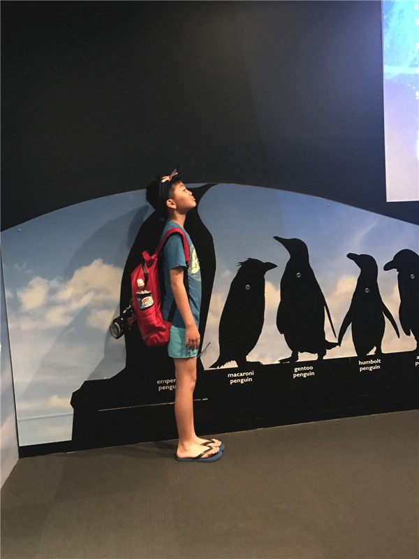 第三天来了,我们将要前往黄金海岸的最后一个景点,海洋世界,第一个来到的地方是企鹅馆,你们脑海里想到的第一件事情肯定是看企鹅,然而这里完全相反,第一步不是看,而是量,量什么?量身高,为什么要量?因为看看你比不比一只成年企鹅高,如果你能比最高的企鹅还要高的话,说明你还挺高的。