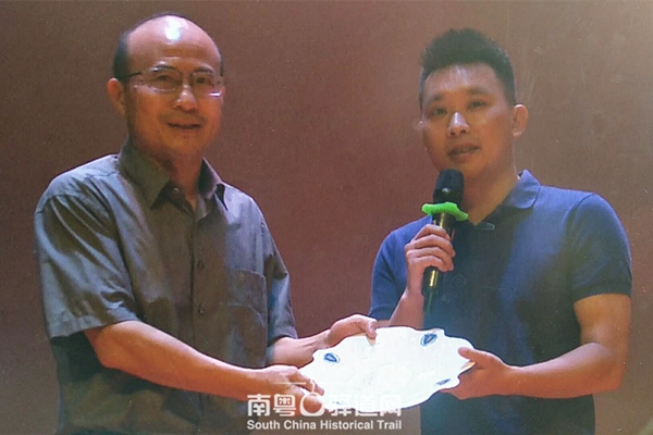 为了能更好地推进“驿道进校园,走近青少年”。罗玉通还为学校和学生们带去了南粤古驿道网的纪念品——南粤古驿道纹章瓷、南粤古驿道网特约撰稿人专辑、《古音峥嵘——中国南粤古驿道古曲复活工程》CD和《奔跑在古驿道——南粤古驿道定向大赛主题歌》CD,多方面地向师生们展示南粤古驿道的风采。