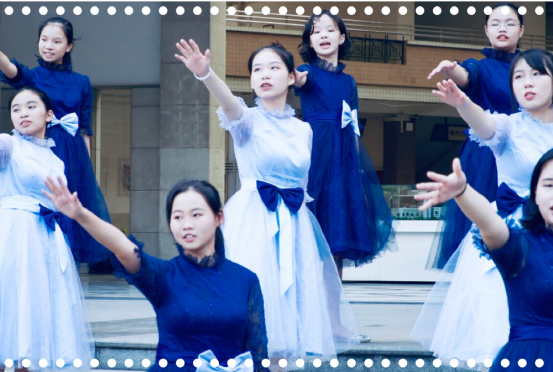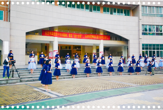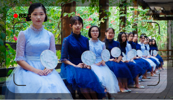 本次拍摄活动由广东广播电视台承担选择了我校具有特色的地球广场、文化长廊、绿草地等地为景点,在用生活场景展现我校校貌的同时,“ES”合唱团还用柔美的音色、典雅的动作演绎了合唱作品《菩萨蛮——小山重叠金明灭》。