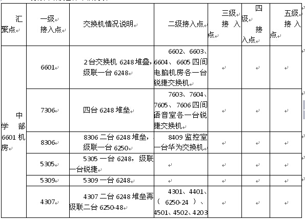 2.现有网络设备分布情况表