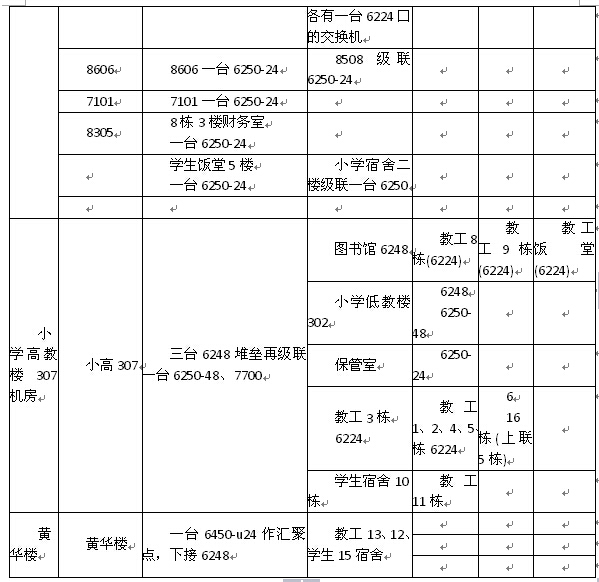 第二阶段改造,增加一台核心层设备,在小学部和宿舍区各增加两台汇聚层设备,原来有部分非网管的低端交换机,要逐步更换升级为可网管的交换机。