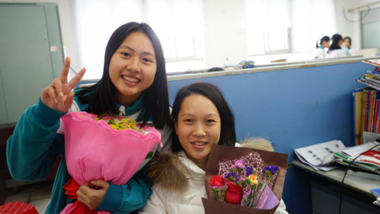 您充满活力的声影总是出现在我们的面前,优美的板书,专业的见解,当然,还有一颗永远的少女心,把我们的心都偷走了。希望老师继续加油,注意身体哦~祝您“女神节快乐” 。 ——ES1504全体同学