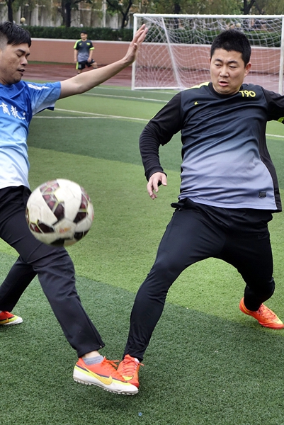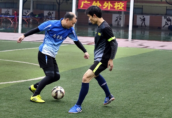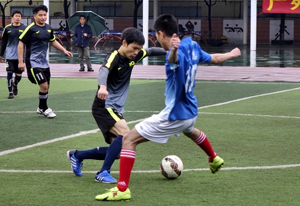 比赛期间,时断时续的春雨并没有影响两队发挥,小场地七人制的比赛因强调传递和配合而大大提高了观赏性,很多返校同学打着伞看完比赛。最后,我校教工足球队凭借主场优势,以5比3赢得比赛胜利——