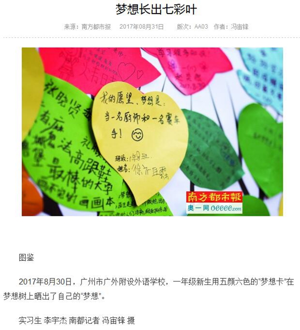 南方都市报:外校一年级学生“晒”梦想