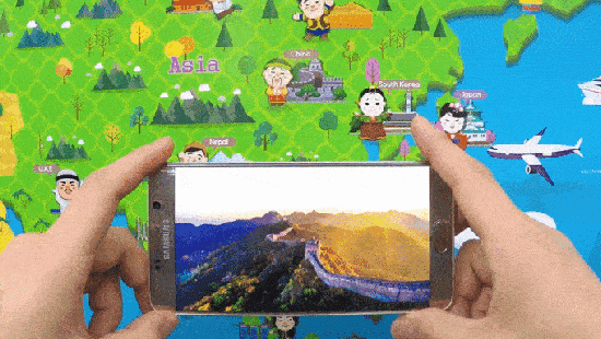 国外对虚拟教学环境的研究可谓热闹非凡,WorldMapPortal这款应用,是一款混合现实地图,它集成了AR和VR两种不同玩法。WorldMapPortal应用打开相机对准地图的某个国家或地区,就可以看到增强现实内容。增强现实内容类似可操作的360度视频,比如选择了长城,可以左右上下摆动手机查看不同的视角,效果很不错。