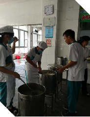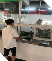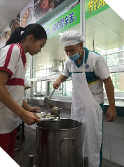 前厨实践:有的分在打菜区、有的在打饭区、有的在维持秩序等。正12点时分,小学初中高中部的学生排着队快速步入两个食堂,实践的孩子们开始经受考验了,这时侯个个都不能有半点马虎,而且要动作快速准确。我们不停地用镜头记录着这些画面,太难得了。半个小时过去,吃饭的人渐渐少了的时侯,我们凑上去和其中一个实践的孩子聊,她说:“我第一次做这样的工作,刚开始觉得蛮好玩的,后面腿好酸、腰也有点疼,这里的叔叔阿姨们实在太不容易了,我们真的不能浪费粮食,要珍惜他们的劳动!