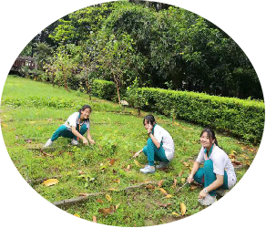 一路追寻他们,我们遇到了环卫组的,他们一个个汗流夹背,拿着铁锹铁耙,衣服也脏了,手也起泡了,但他们还笑着说:“上午锄了两个小时的草,刚开始没找到工具直接用手抓!下午还要去捡垃圾”。何队长还说“这天实在是太热了,也很累,但是我们闻到了早晨泥土的气息、大自然清新的空气、感受到农民伯伯的辛苦,现在我知道了真的要好好读书!”